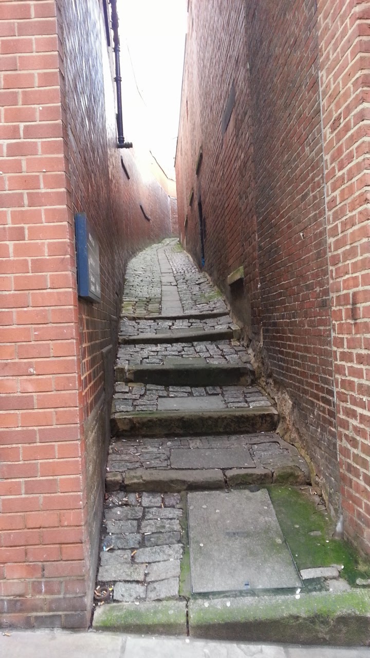 This little walkway somehow looks wider in the picture than it was. It was very narrow. Two people could not walk next to each other unless they were both Twiggy. And maybe not even then.